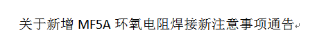 關于新增MF5A環氧電阻焊接新注意事項通告